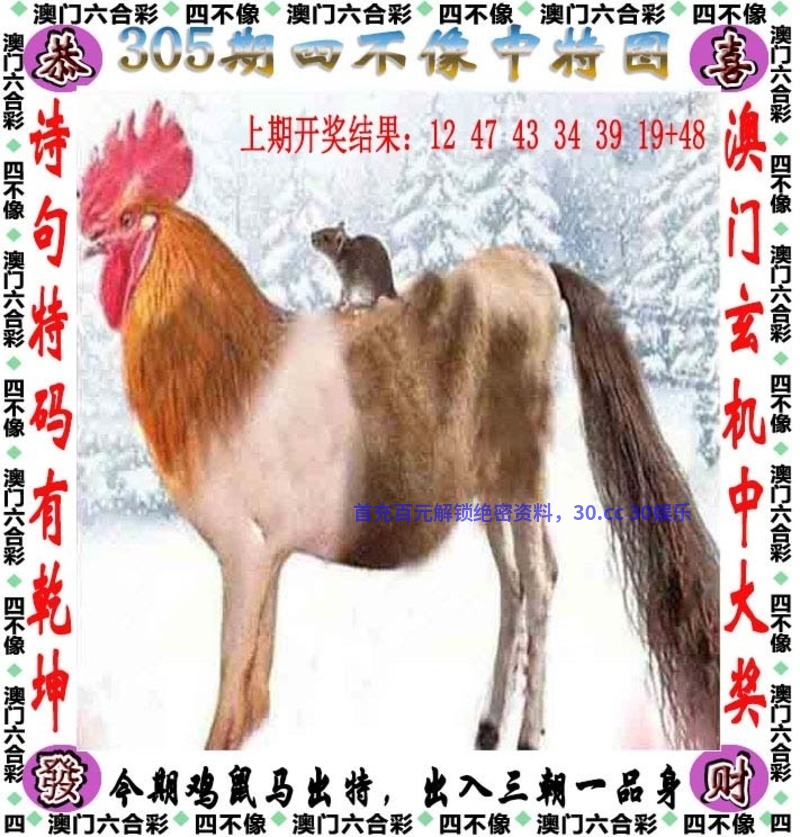 305期:【今期鸡鼠马出特,出入三朝一品身】开:鼠42 ①图解特肖:鸡鼠马牛狗